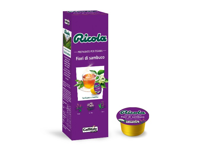 Zucchero, destrosio, estratti (1,1 %) di fiori di sambuco e della miscela di erbe Ricola (piantaggine, altea, menta, timo, salvia, alchemilla, achillea, pimpinella, malva, sambuco, primula,veronica, marrubio); estratto (0,5%) di tè nero, acidificante (acido citrico), aromi naturali.