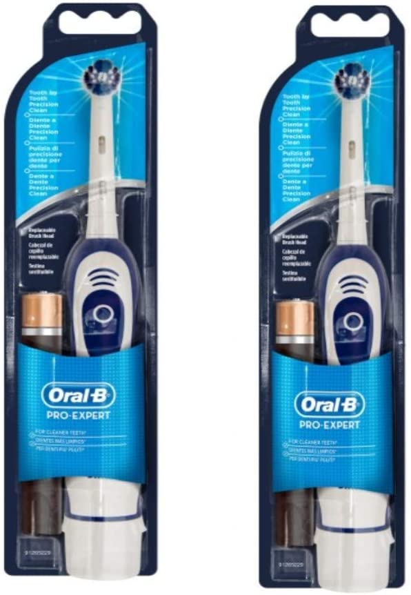 Oral-B Braun Pro Expert DB4010 – Spazzolino da denti a batteria, confezione da due, colore: bianco e blu