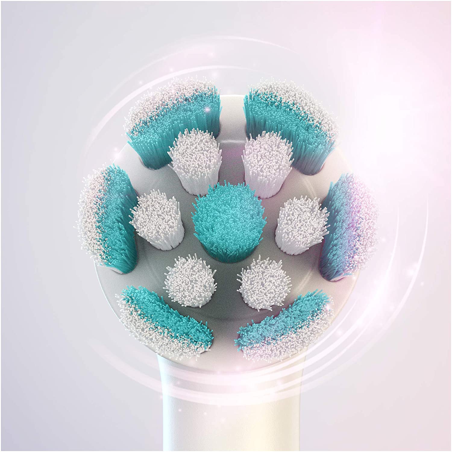 Sulla testina rotonda dello spazzolino Oral-B, le setole sono accuratamente disposte per circondare meglio ogni dente e ottenere un’efficace pulizia