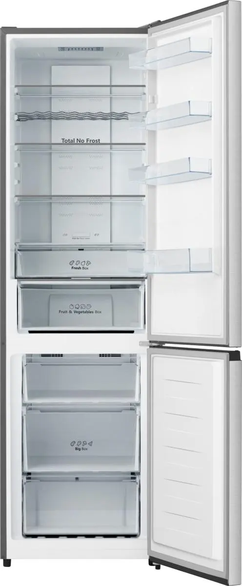 Il modello Hisense RB440N4BCE è un frigorifero combinato a libera installazione pensato per offrire massimo spazio e tecnologia. Con un’altezza di oltre 2 metri e una capacità totale di 336 litri, garantisce una gestione ottimale della spesa. Grazie alla tecnologia Total No Frost, non sarà più necessario sbrinare manualmente, mentre il compressore a frequenza variabile assicura risparmio energetico e silenziosità.