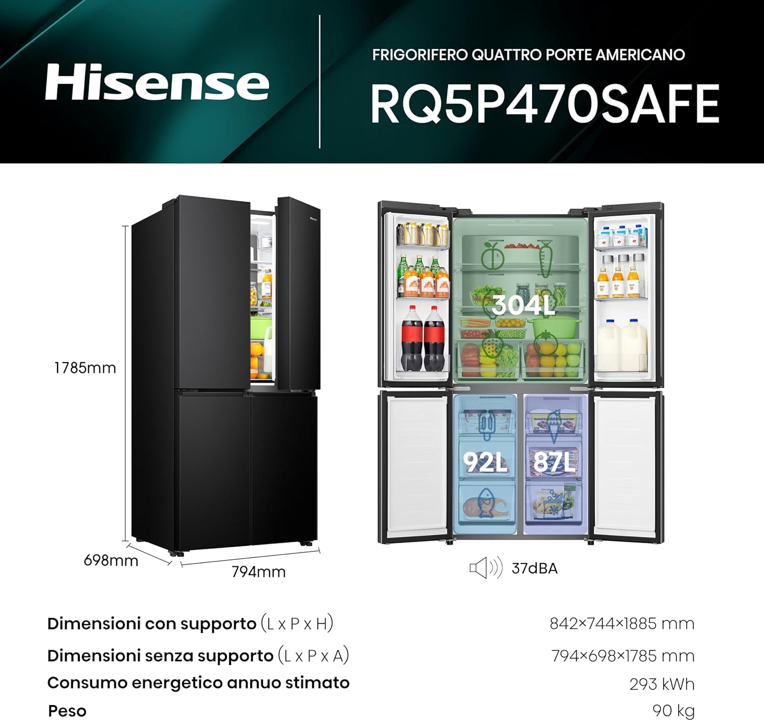 Progettato per aspirare l’aria da sinistra e espellerla da destra, separando con successo l’aria fredda proveniente dall’esterno da quella calda all’uscita dell’aria. Questo crea un flusso d’aria tra la base del frigorifero e il pavimento, migliorando l’efficienza energetica e consentendo un design adatto alla cucina.