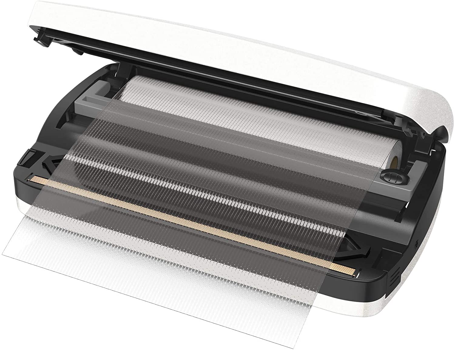 - Vano porta rotolo e taglierina integrati; ampia barra sigillante da 30 cm
