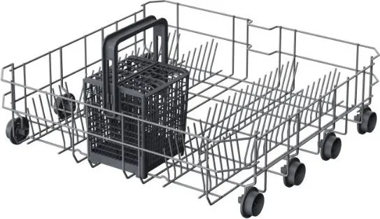 Il cesto superiore è regolabile in altezza, permettendo di inserire piatti o pentole di grandi dimensioni nel cesto inferiore, il quale è dotato di un sistema di blocco anti-caduta per la massima sicurezza durante l’estrazione.