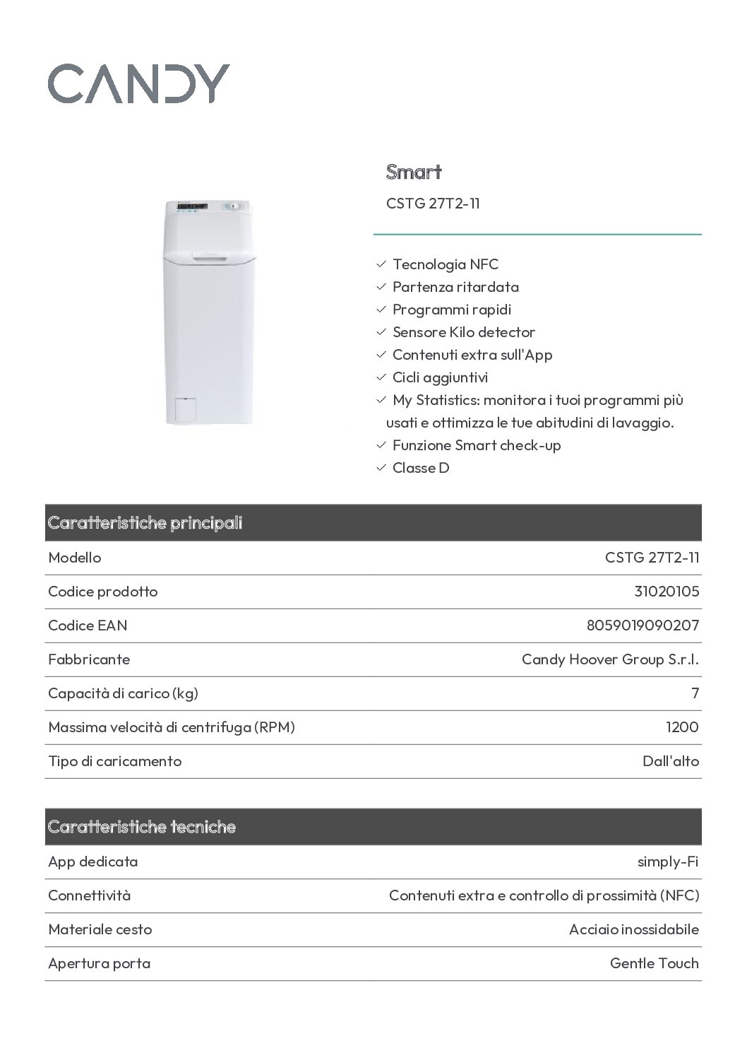 Candy SmartCSTG 27T2 11: Lavatrice a Carica dall Alto Smart