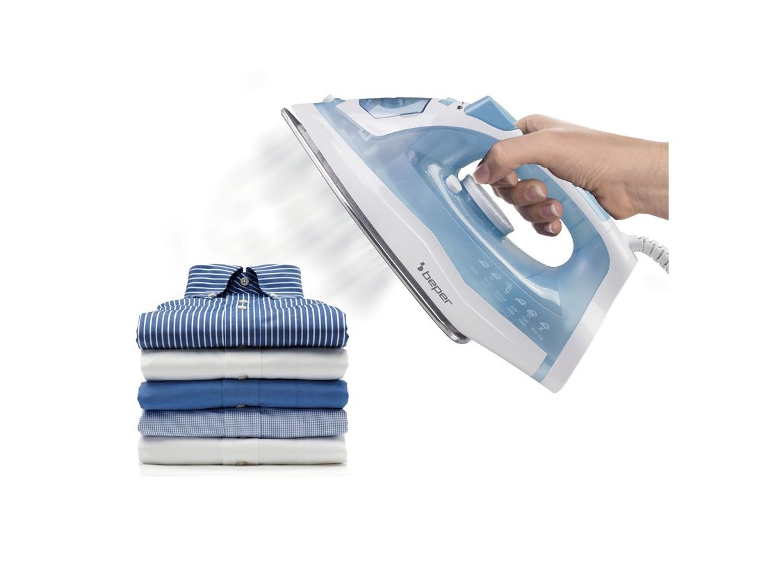 Ferro da stiro con piastra in acciaio molto potente per raggiungere in breve tempo la temperatura desiderata.