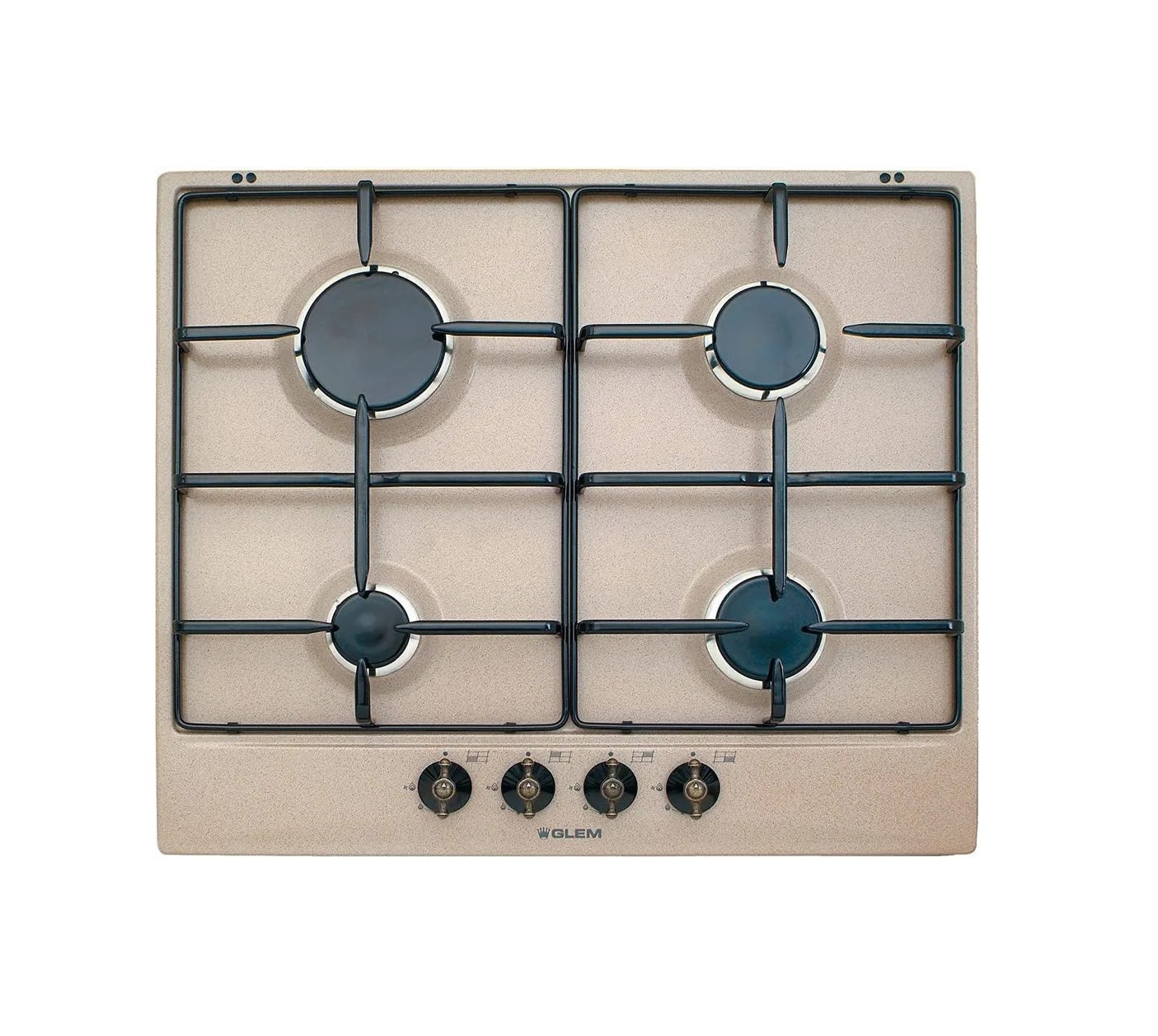 Glem Gas GT64SA. Colore del prodotto: Sabbia, Posizionamento dell’apparecchio: Da incasso, Tipo di piano cottura: Gas. Bruciatore piccolo: 1000 W, Bruciatore medio: 1750 W, Bruciatore grande: 3000 W. Tipo di controllo: Manopola, Posizione di controllo: Frontale superiore. Larghezza: 585 mm, Profondità: 500 mm, Altezza: 30 mm