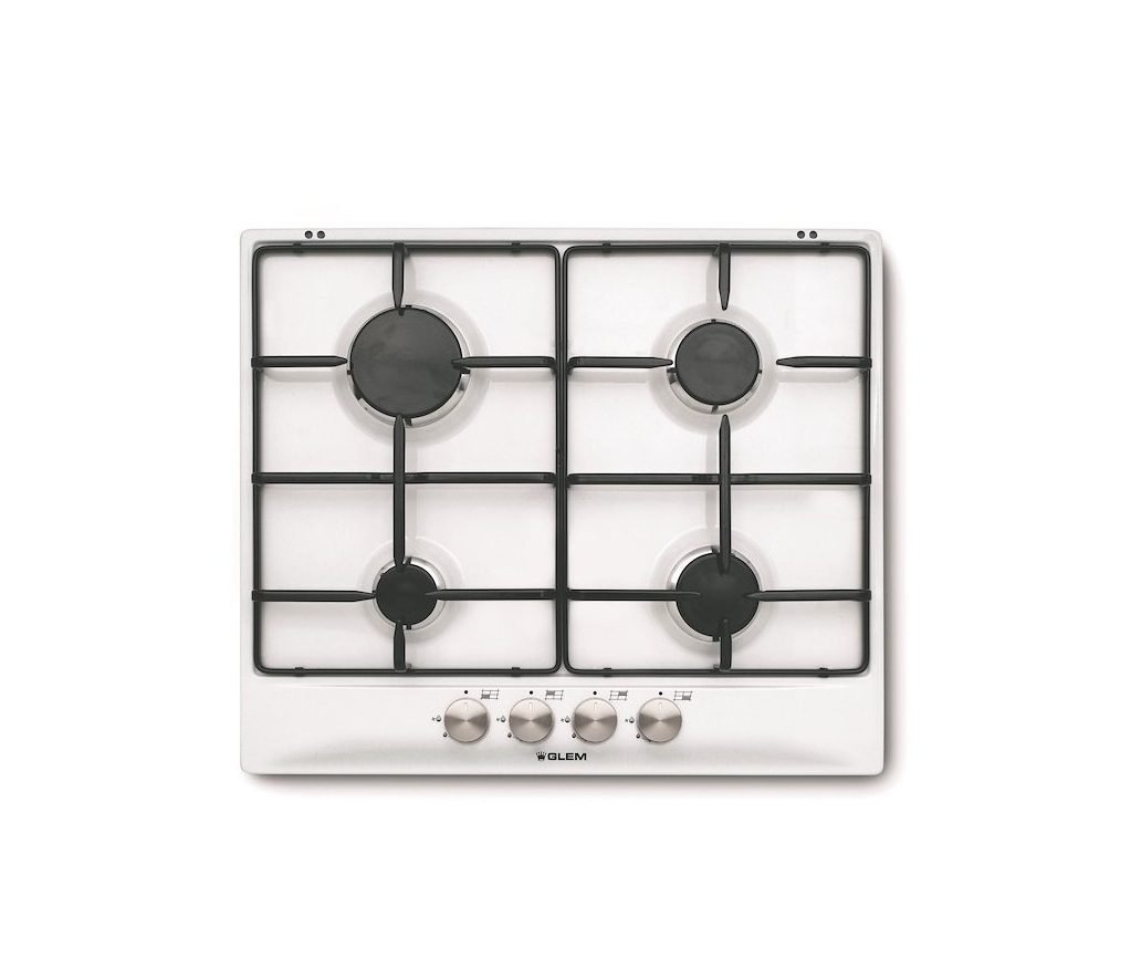 Il piano cottura Glem Gas P4GFXV , con il suo elegante design in bianco, offre una combinazione di funzionalità avanzate e sicurezza.