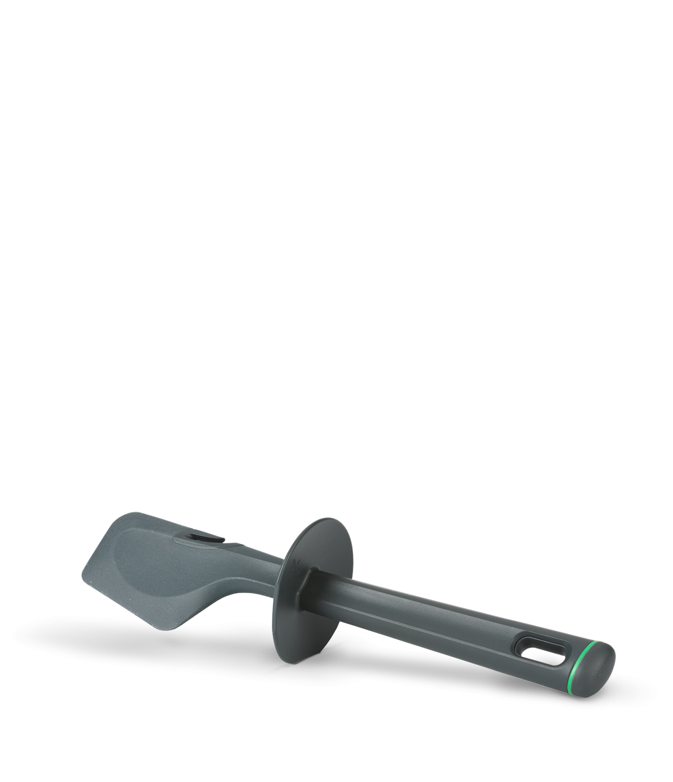 - Grazie alla sua flessibilità, è perfetta per trasferire e riunire sul fondo del boccale tutte le preparazioni, è dotata di un disco di sicurezza che ne permette l’utilizzo anche quando le lame del gruppo coltelli sono in movimento