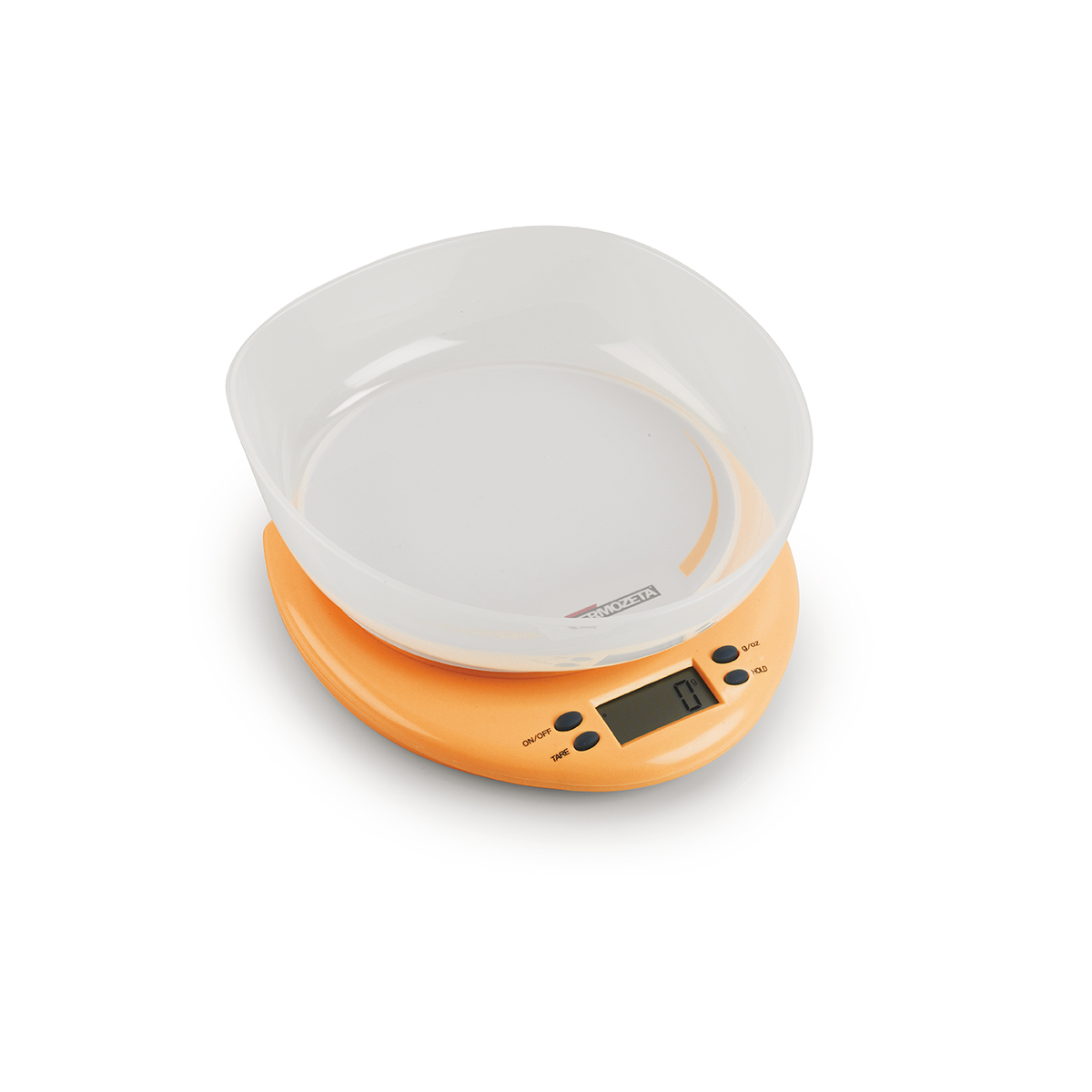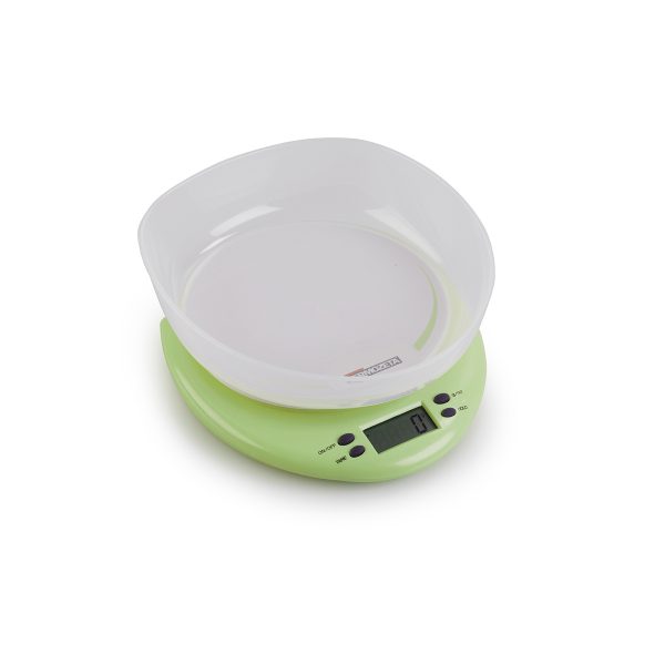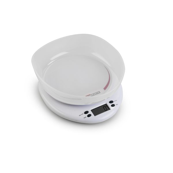 - Con display digitale. È una bilancia da cucina elettronica, dotata di display digitale, la cui capacità massima è di 5kg. La ciotola trasparente ha una capacità di 1 litro. Azzeramento e spegnimento sono automatici. È in grado di calcolare la tara. Funzionamento a batteria.