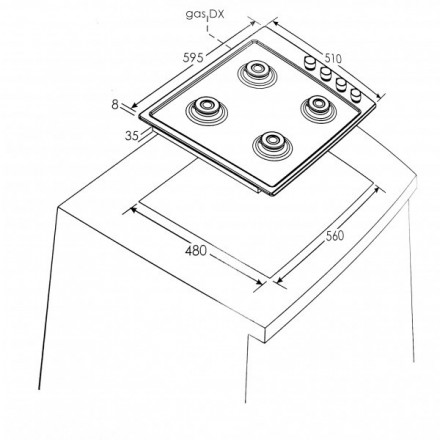 Con una larghezza di 595 mm e una profondità di 510 mm, il piano cottura si inserisce armoniosamente nell’ambiente cucina, offrendo al contempo un’ampia superficie di lavoro.